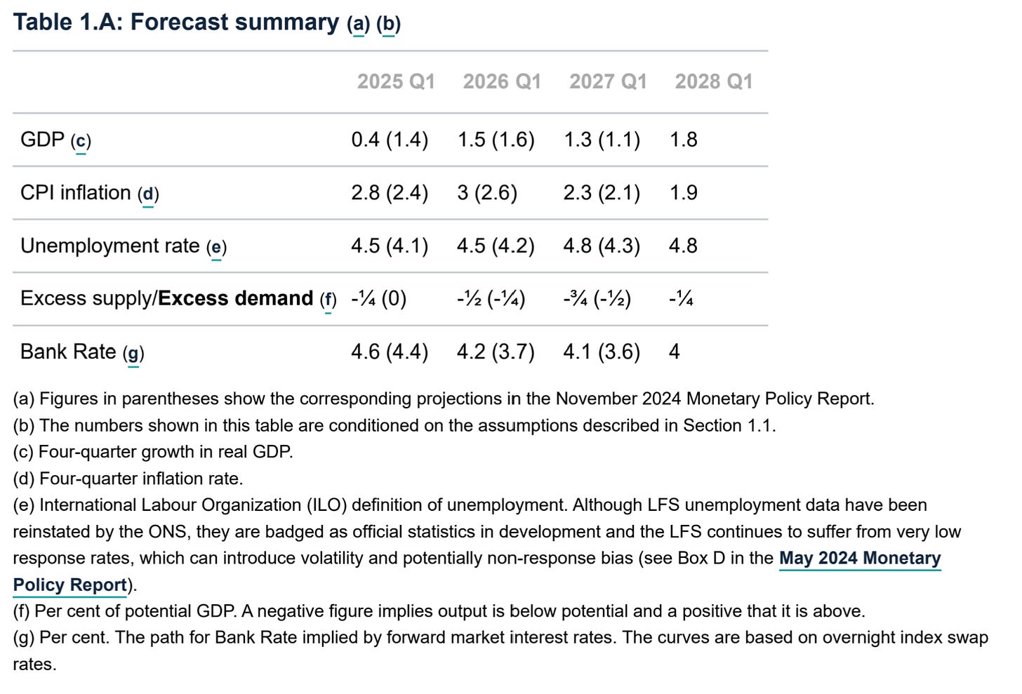 BoE Feb 2025 MPR Forecast Table: